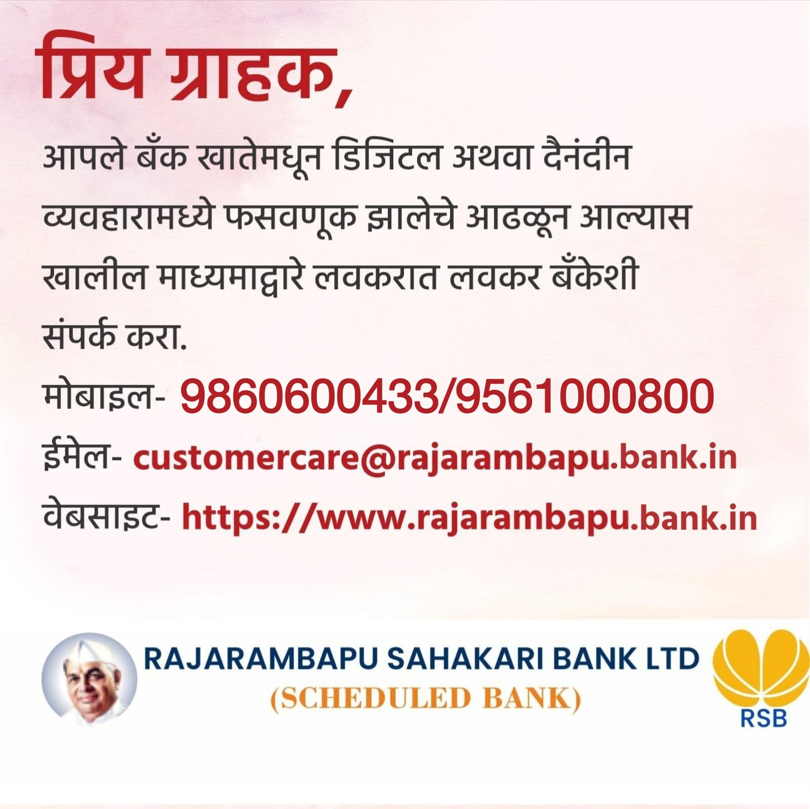 Board Of Directors Annual Reports Form Center Deposit Interest Rates Unclaimed / Inoperative Accounts DEAF Account Policies & Procedures Privacy Policy Customer Awareness EMI Calculator Settlement Claims of Deceased Customers of Banks RBI Kehta Hai IRDAI Terms and Conditions INFORMATION ON SECURED ASSETS POSSESSED UNDER THE SARFAESI ACT,2002 Return of original movable immovable property documents - legal heirs Mobile Banking Insurance Debit Cards Chairman Message QR Codes Safe Locker
